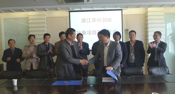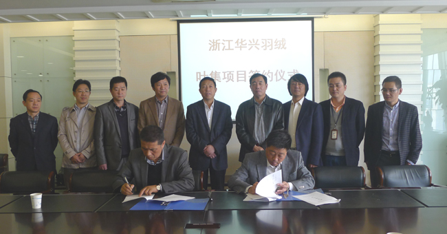 11月22日上午,浙江华兴羽绒有限公司与安徽省六安市叶集改革发展试验区管委会在集团27楼会议室隆重举行签约仪式。双方就华兴羽绒在叶集投资建设羽绒及制品加工项目的相关具体事宜进行了有好的协商和细致的沟通,华兴羽绒副总经理孔渭成和叶集管委会副主任王振龙代表双方签署了投资协议书。叶集区工委书记梁国金及管委会相关领导,集团董事长姜益民、副总经理吴元明,华兴羽绒总经理王干友及相关部门负责人出席了签约仪式。