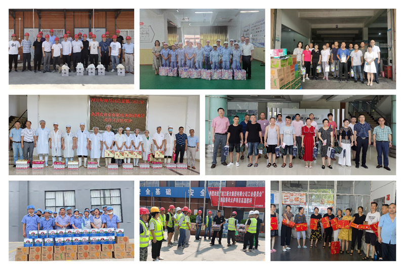 酷暑盛夏,热浪滚滚,正值集团外贸生产出货高峰和工程项目赶抢进度之际,集团一线员工们依然坚守岗位,用他们的汗水,保障了集团各项生产经营活动的稳定。为感谢一线员工的辛勤付出,传递集团对员工的关爱, 自8月中下旬以来,集团工会组织“夏季送清凉”慰问活动,省社、兴合及集团领导陆续深入基层一线,先后前往必赢76net线路官网集团位于临安、桐庐、萧山、滨江、大江东、海盐、湖州等地的24家生产基地和房产项目现场,看望、慰问奋战在高温下的一线生产工人及服务保障人员逾千人,送出了价值20余万元的“清凉”大礼包。