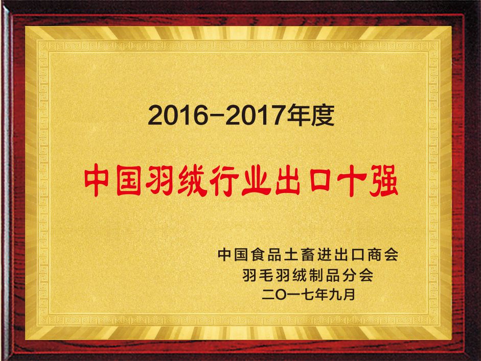 Top 10 Exports of China's Down Industry from 2016 to 2017