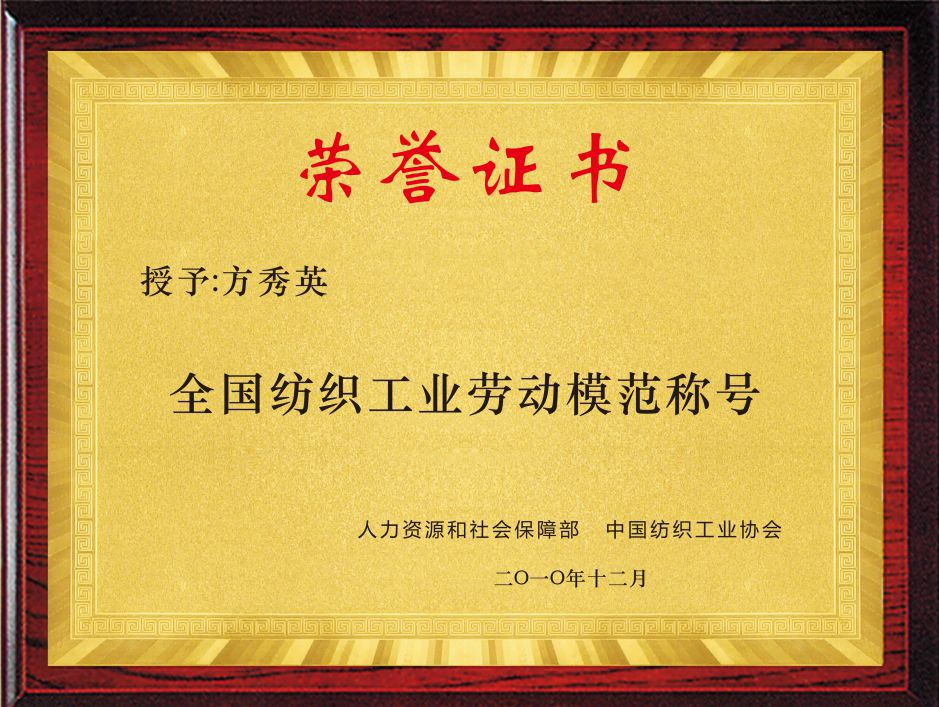 National model worker in Textile Industry in 2010